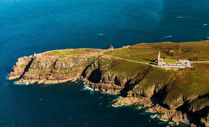 Depuis les airs, le Cap Fréhel révèle toute la puissance de la côte bretonne. Ses falaises abruptes plongent dans une mer d’un bleu profond, tandis que landes et bruyères dessinent une mosaïque de couleurs changeantes. Le phare, posé comme un repère au bout du monde, complète ce décor spectaculaire. Un survol du Cap Fréhel offre un panorama grandiose, où nature brute et lumière océanique se rencontrent..